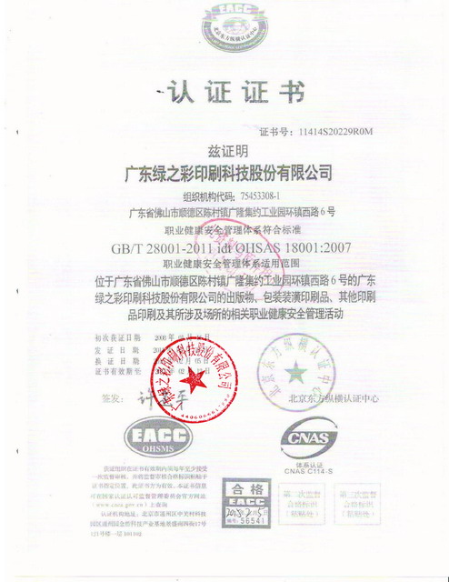 职业健康28001认证中文